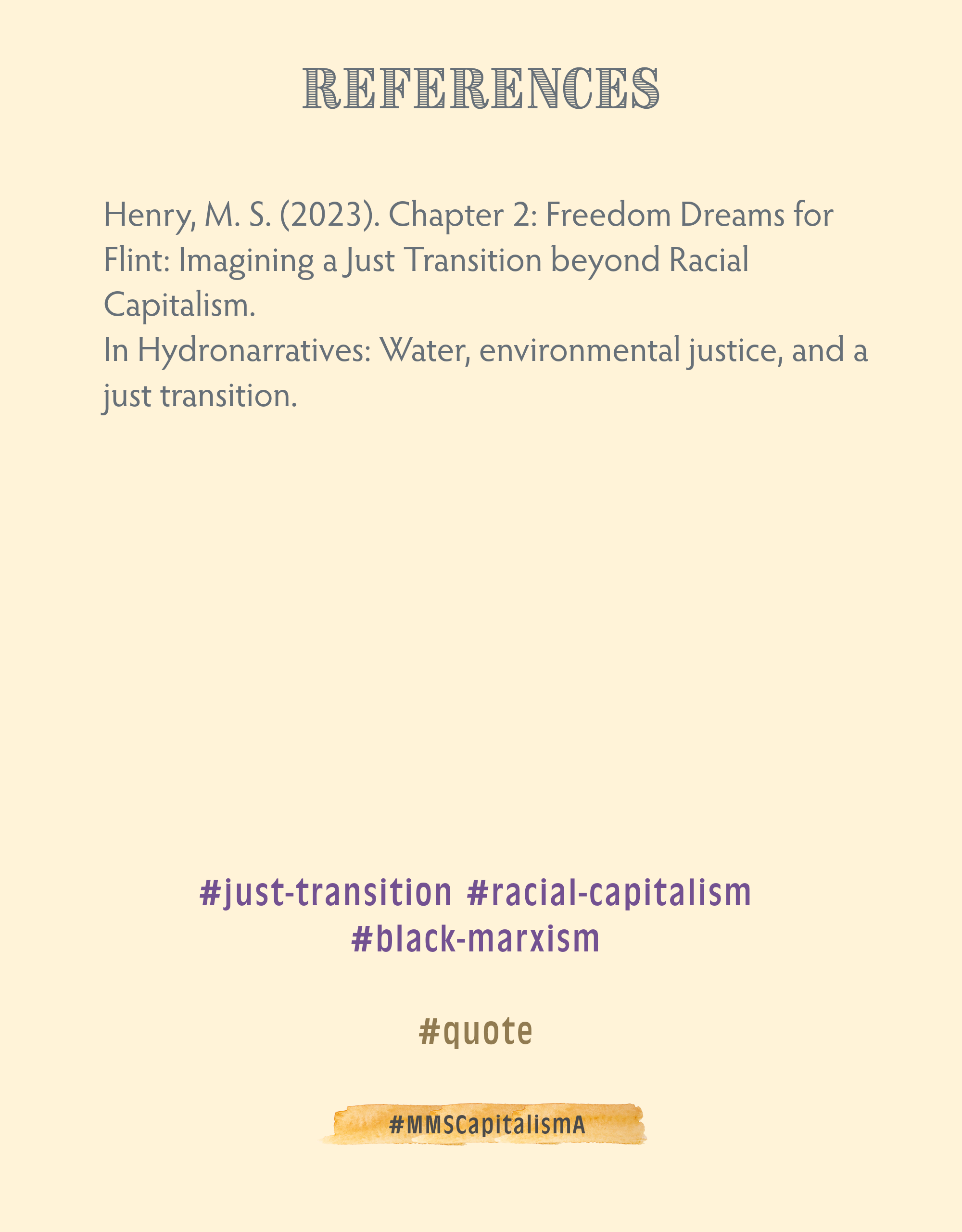 Henry, M. S. (2023). Chapter 2: Freedom Dreams for Flint: Imagining a Just Transition beyond Racial Capitalism. In Hydronarratives: Water, environmental justice, and a just transition.