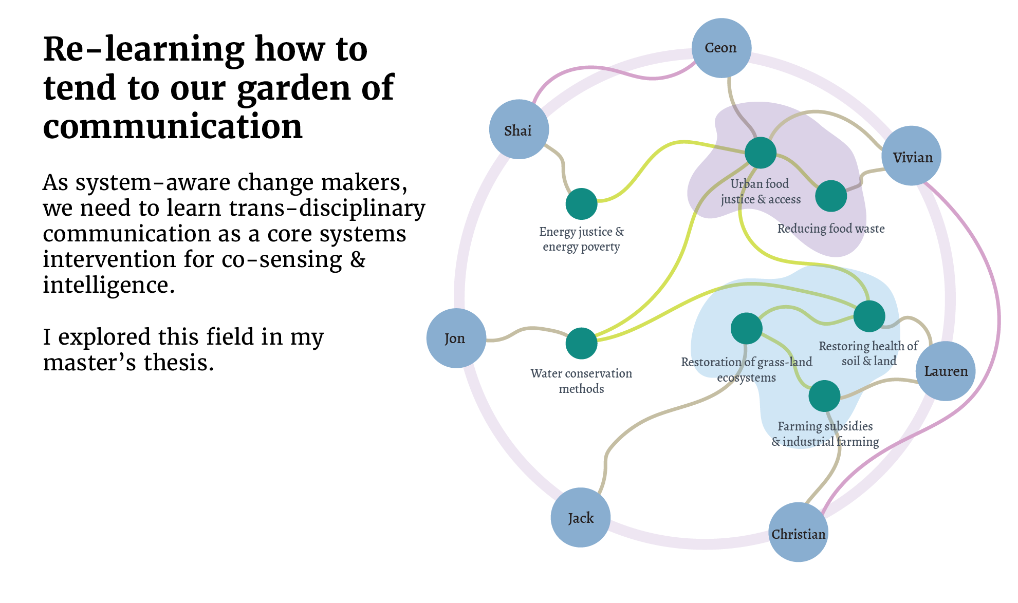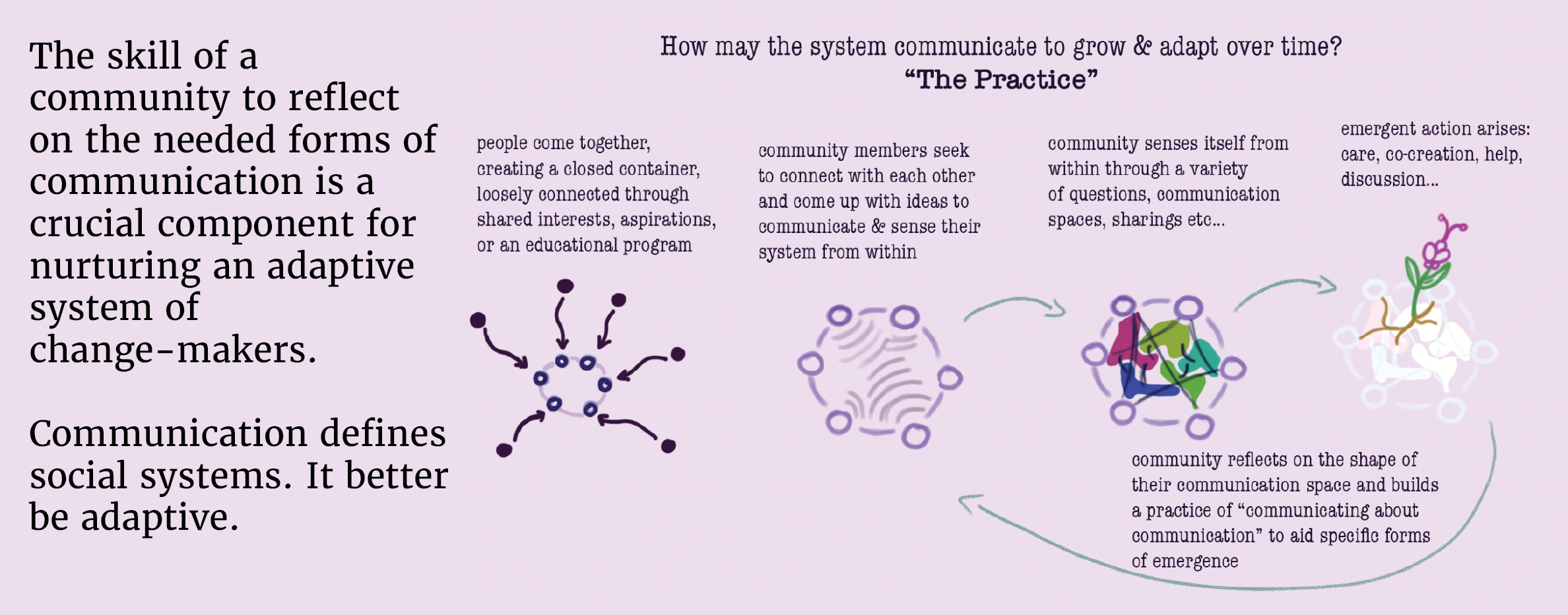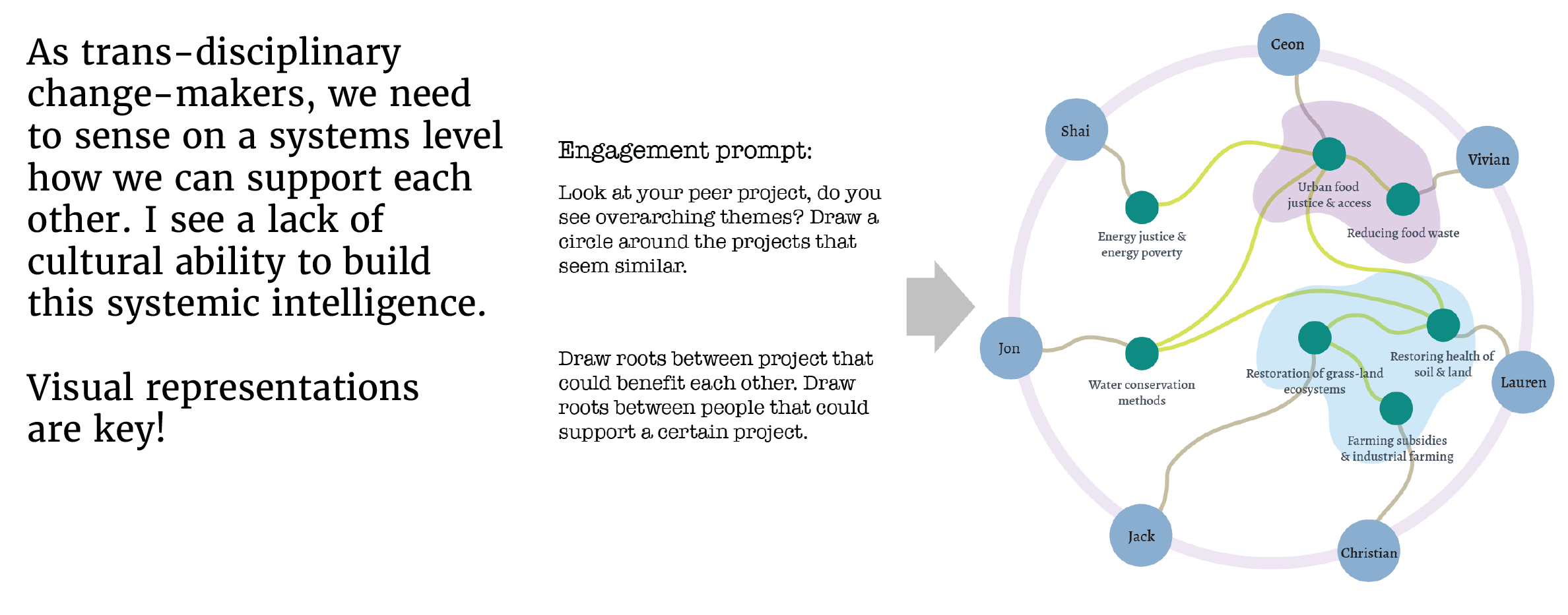 I see great power in visuals because complex processes can simply not be expressed or easily understood through linear frameworks. Yet, almost all of our digital communication spaces provide linear communication feeds.