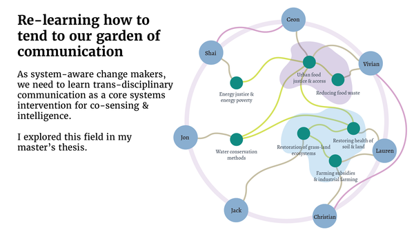 Here, we might think about digital tools right away. However, I am very cautious of building tools before we understand what we truly need. Therefore, I decided to dedicate my master's capstone project to this inquiry. I talked to collaboration experts, knowledge management innovators, interviewed climate change activists, and co-envisioned practices and spaces for climate justice work with my fellow students and change-maker friends.