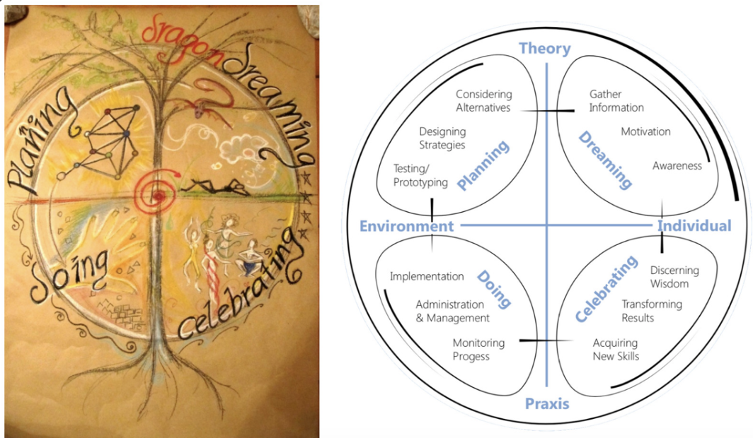This framework reminds me of Monica Dennis’ framework which teaches us to move from oppressive systems to liberatory systems by reconnecting to source, story, body, and emotions.